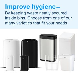 Tork 50L Bin Black B1: Maximise space in your washroom with our Tork 50L plastic bin. The flexible mounting options ensure it can fit comfortably into any space, as it can be fixed to either the wall or floor. Areas are kept looking tidy, as the concealed bin liner provides a neat finish. Plus, the bin’s modern, functional Elevation design will leave a positive impression on guests. Combine your waste bin with our soft-close lid to increase its overall hygiene and safety.