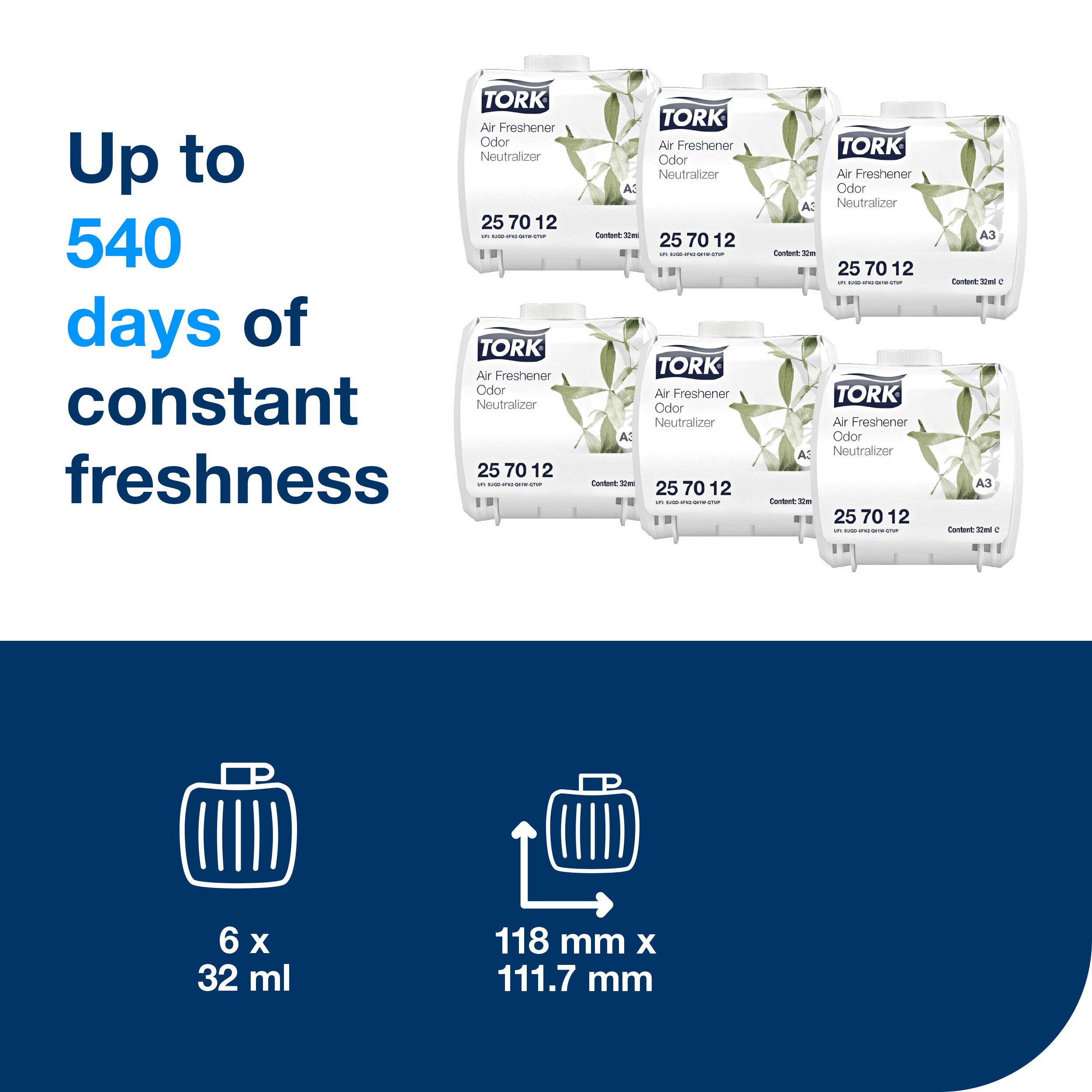 Tork Constant Air Freshener Refill Odour Neutraliser A3, Lemon Grass Scent, 6 Refills, 257012
