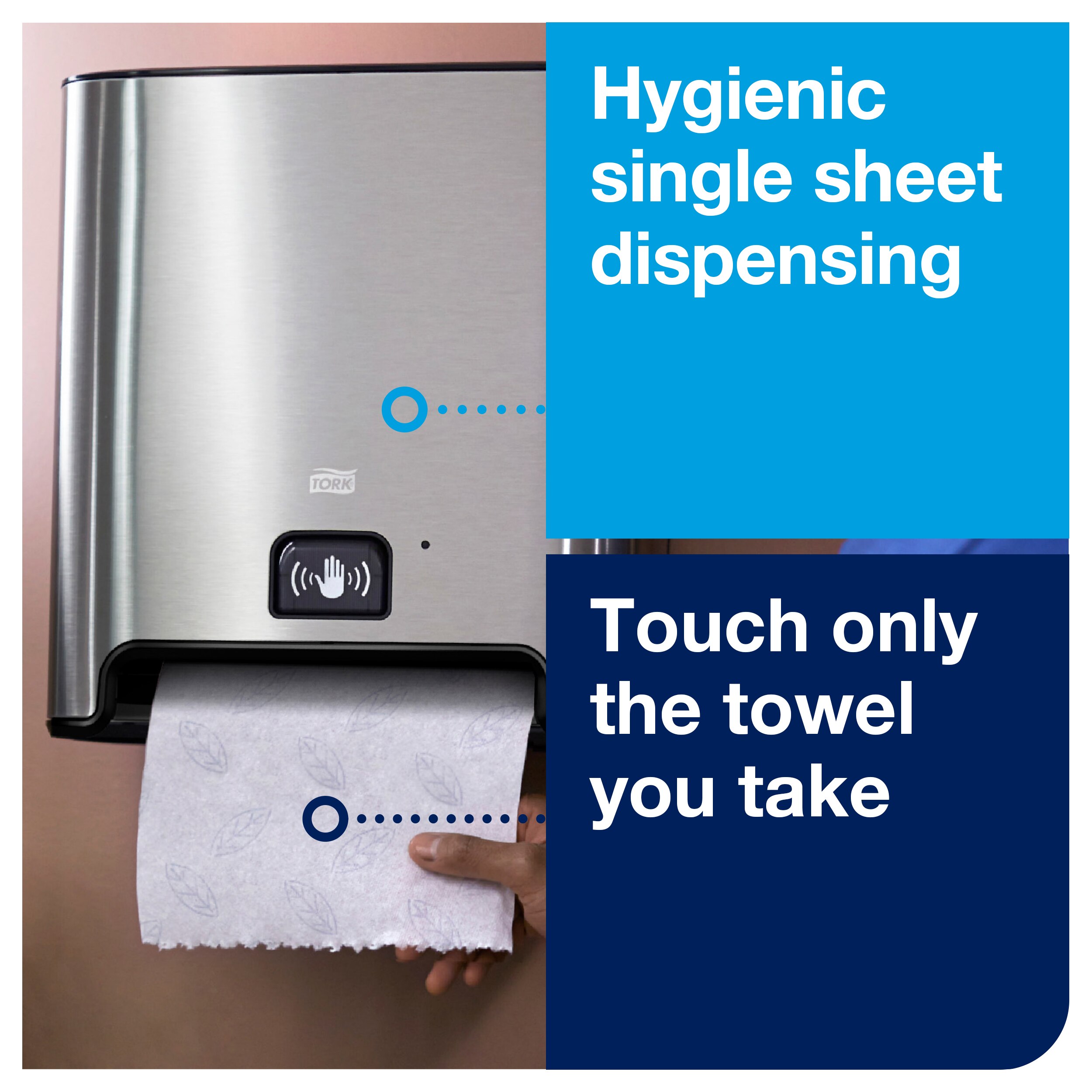 Boost hygiene – with one-at-a-time sensor dispensing, users only touch exposed hand towels, rather than the dispenser.