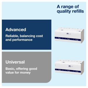 Tork PeakServe®: the latest innovation designed for high-traffic washrooms where staff needs to maximise cleaning time and maintain a good flow of people. Compatible with Tork PeakServe® Continuous™ hand towels, the system has a very high capacity of 1230 towels, which can be dispensed quickly and without interruption to maintain flow. The compressed refills are fast to load, can be topped up at any time and are easy to store and transport, enabling staff to focus on cleaning, not refilling.